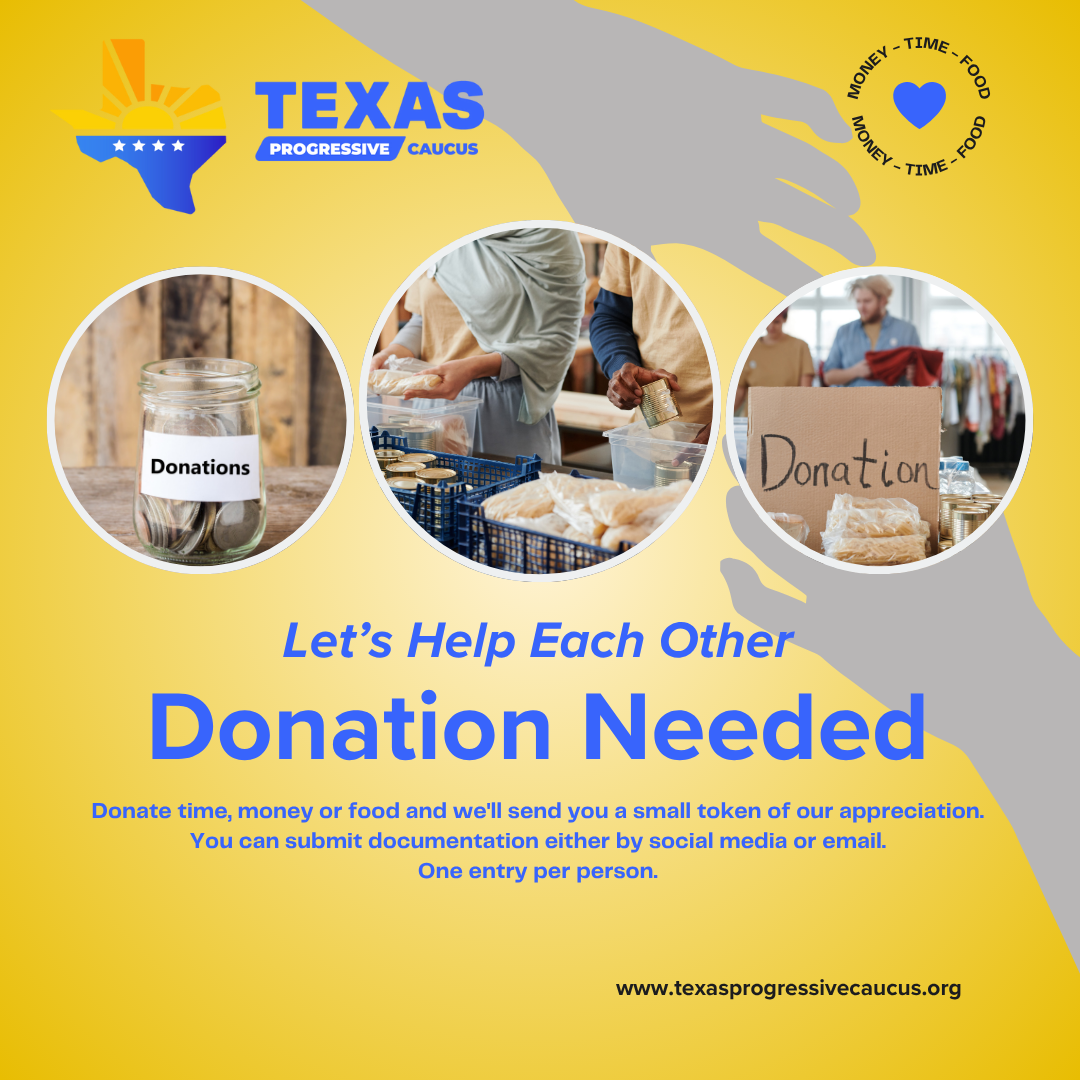 Texans are facing challenges due to the current shutdown, and just like many communities across the country, working-class families are showing up for one another. To express our gratitude for your community efforts, the Texas Progressive Caucus (TXPC) is excited to announce a special giveaway.*